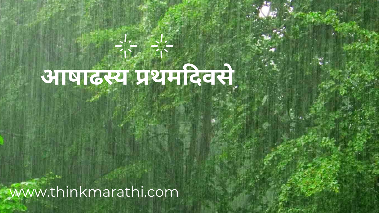 आषाढ म्हणजे वर्षाऋतूची सुरुवात , अंगाची लाहीलाही करणारा तप्त उन्हाळा संपून पावसाची चाहूल लागते . आसमंतात क्षणात उन , क्षणात सरसर धावणारे काळे ढग यांचा लपंडाव सुरू होतो . हवेत किंचितसा अल्हाददायक गारवा , म्हटलं तर पाऊस , म्हटलं तर ऊन असं वातावरण . काहीसा मनाची घालमेल वाढवणारा माहोल . अशा या अवस्थेत विरही प्रेमिकाचं मन सैरभैर झालं नाही तरच नवल . क्षितिजरेषेवर आक्रमकपणे चालून येणाऱ्या गर्द निळ्या मेघांना बघून मनात उठणारं काहूर , प्रतिभासमृद्ध महाकवी कालिदासांच्या लेखणीतून मेघदूत हे महाकाव्य बनून अवतरलं . महाकवी कालिदासांच्या ” आषाढस्य प्रथमदिवसे ….. ” या ओळी अजरामर झाल्या आहेत .आषाढाचा पहिला दिवस जणू या महाकवीला समर्पित करण्यात आला आहे . आषाढ , मेघदूत आणि कविश्रेष्ठ कालिदास यांचं गारुड रसिक जनमानसावर अमिट राहणार आहे .