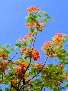 ग्रीष्मातल्या रणरणत्या उन्हात सहस्त्ररश्मी आपल्या हजार हातांनी पृथ्वीवर आग बरसत असताना , गुलमोहर वृक्ष आपल्या परीने ते थोपवण्याची शिकस्त करत असतो . काजळकाळ्या रात्री छोटीशीच मिणमिणती पणती त्या घनघोर तिमिराचा मुकाबला करते तसाच हा गुलमोहराचा प्रतिकार असतो . विपरीत परिस्थितीत खचून न जाता सकारात्मक दृष्टिकोन ठेवण्याचा संदेश देतो गुलमोहर . पूर्णपणे मेघविरहित निळ्याभोर आकाशाच्या पार्श्वभूमीवर मोठा दिमाखदार दिसतो गुलमोहर . पूर्ण भरात असता गुलमोहराच्या वृक्षावर पानापेक्षा फुले जास्त दिसतात . लाल केशरी रंगाचा भरजरी शेला पांघरलेल्या नववधू सारखा दिसतो गुलमोहर !