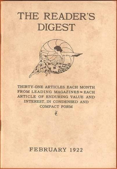 5 फेब्रुवारी 1922 – शंभर वर्षं पूर्ण होत आहेत आज या अभिरुची संपन्न मासिकाला . कालानुरूप आज हे डिजिटल फॉर्ममध्ये उपलब्ध आहे . जेंव्हा आजच्या सारखा माहितीचा विस्फोट झाला नव्हता तेंव्हा Authentic माहिती मिळवण्याचा विश्वसनीय स्त्रोत होता रीडर्स डायजेस्ट . आजही आपल्या या ब्रीदाला जागून आहे रीडर्स डायजेस्ट .